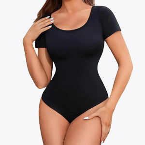 Ofertă 1+1 Bodysuit Modelator Tanga cu Mânecă Scurtă RunwayShape - Scoop Neck
