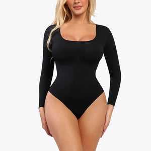 Ofertă 1+1 Bodysuit Modelator Tanga cu Mânecă Lungă RunwayShape - Square Neck